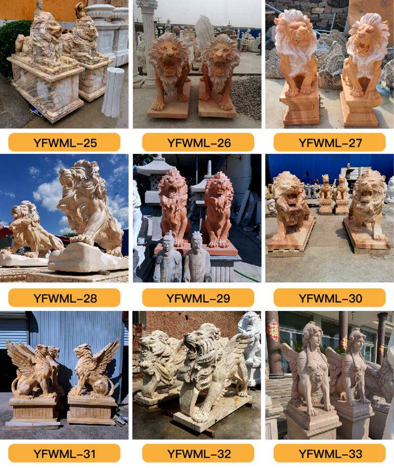 YouFine has different styles of marble lion statues carved from different marble materials. There are also many different choices of colors. No matter what kind of marble material it is, the carving artists in our factory would devote all their efforts to carving the most perfect artwork.