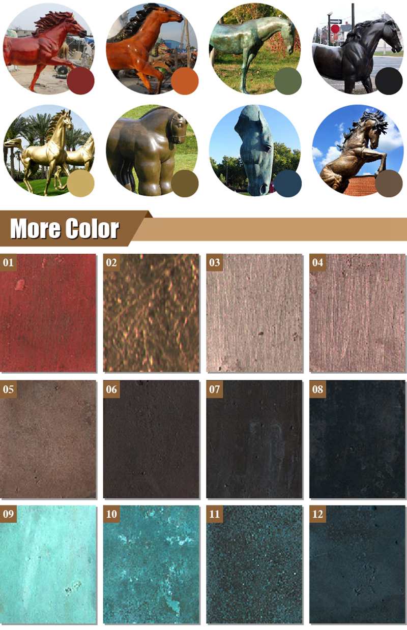 The patina on the bronze lion sculpture further enhances its beauty and allure. Over time, the patina develops, lending a unique and rich coloration to the sculpture. Shades of green, brown, and amber blend together, contributing to the sculpture’s overall aesthetic appeal and hinting at its age and history. Also, the YouFine factory has different coloring schemes and offers different colors for customers to choose from.