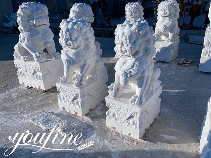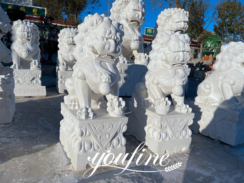 Each marble lion statue artwork by YouFine is made of high-quality marble. Of course, our Chinese Outdoor Foo Dog Statues are no exception. YouFine has carefully selected the highest quality marble materials to carve this pair of marble statues. All stones are natural stones mined from mines without any flaws. We would carve this marble foo dog statue with the finest pure white marble raw material. So you could see the exquisite detail of our sculptures. So, a high-quality marble Chinese lion statue could be used outdoors for many years without any problems.
