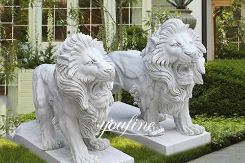 The white marble lion statues carved by the artisans of YouFine factory are often loved by customers for their realistic images. We have artisans who specialize in making marble lions. Every small part of the marble lions they carve is lifelike, almost to the point of being fake. Especially the lion’s eyes are so divine under the hand-carving of the artisan, just like a pair of eyes staring straight at you, which makes people awe-inspiring.